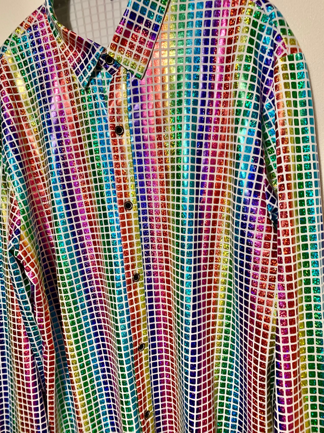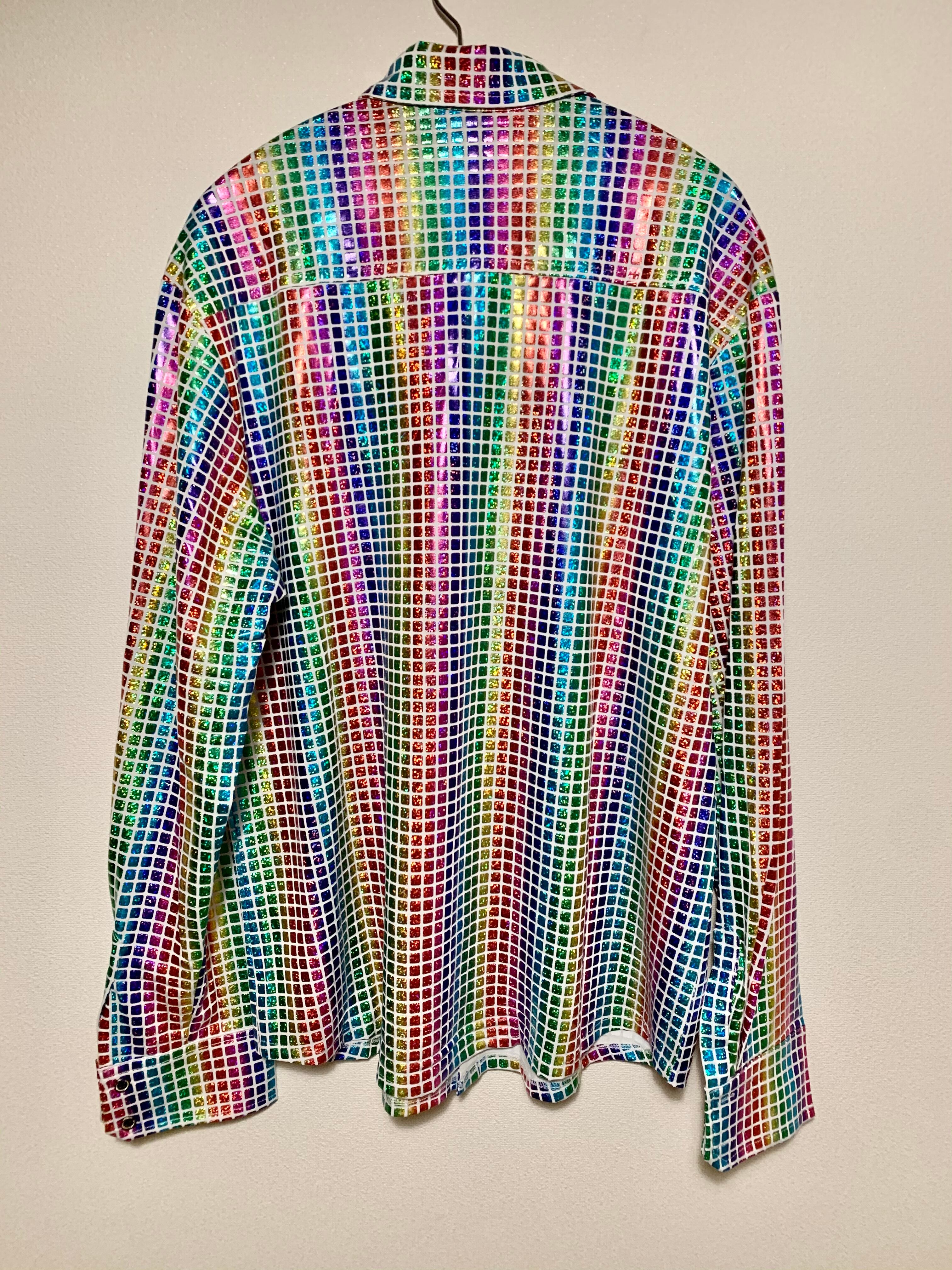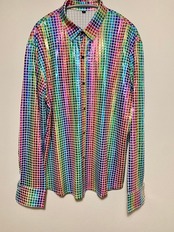 レインボーカラーとても華やかなシャツ。