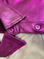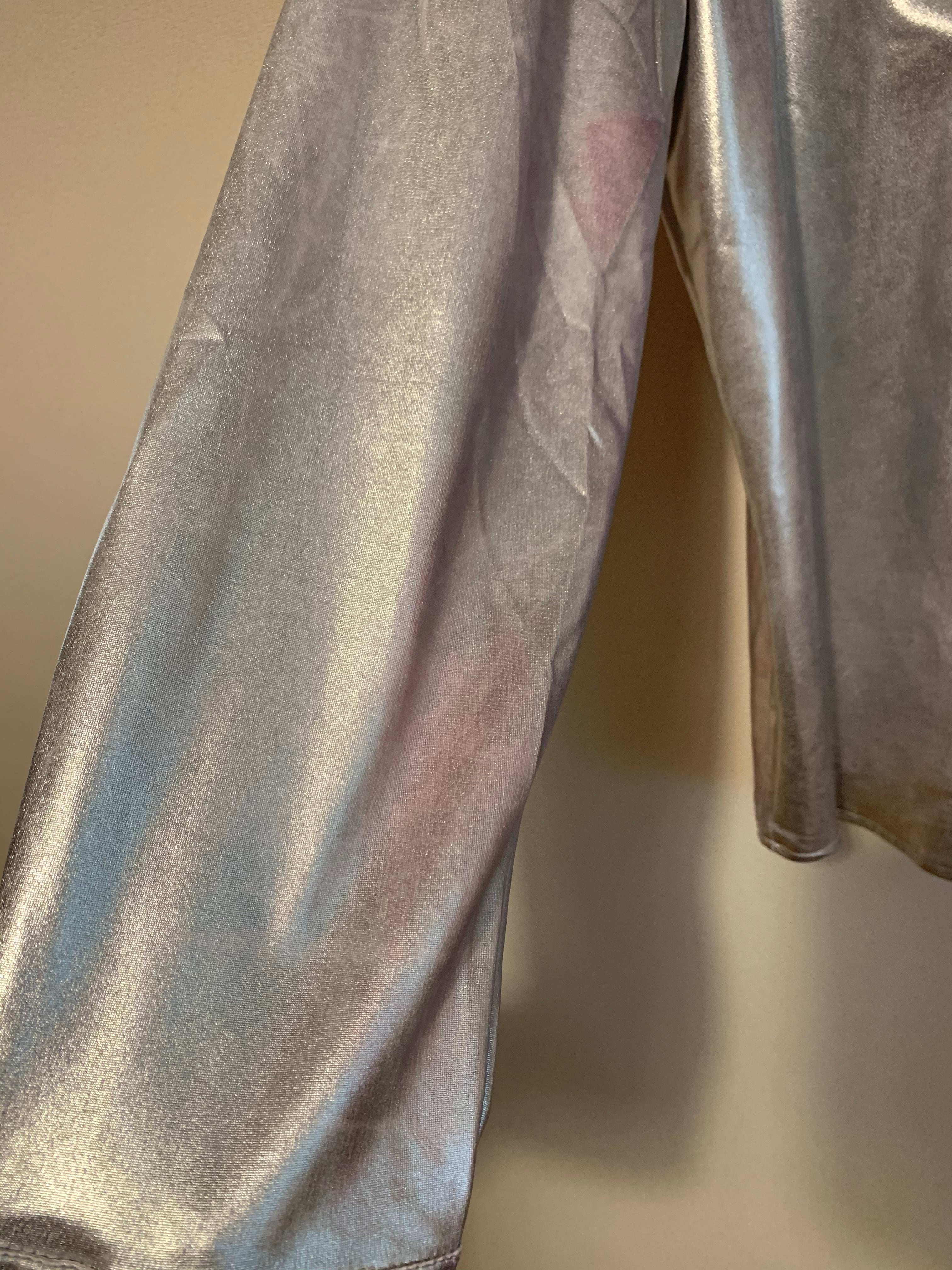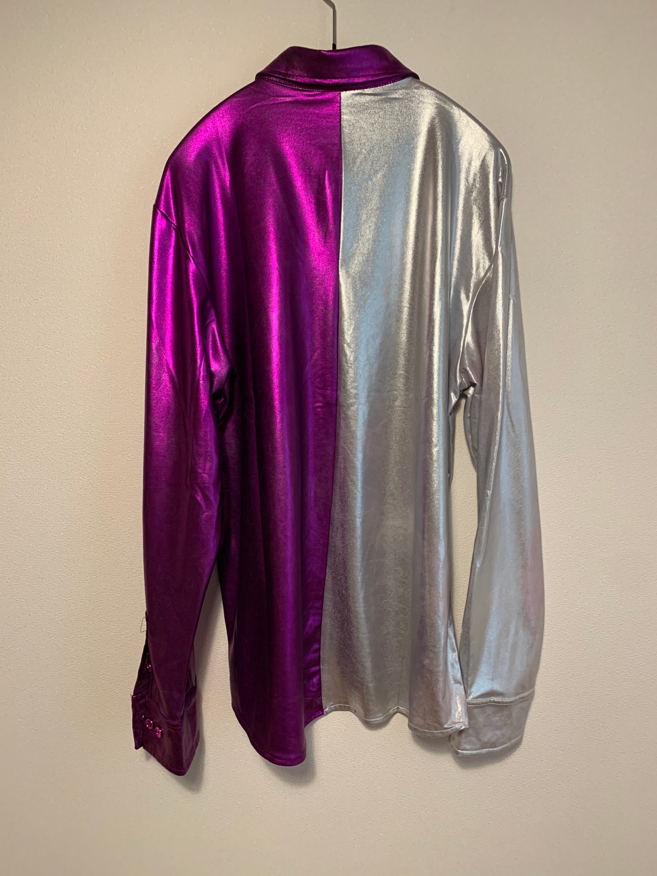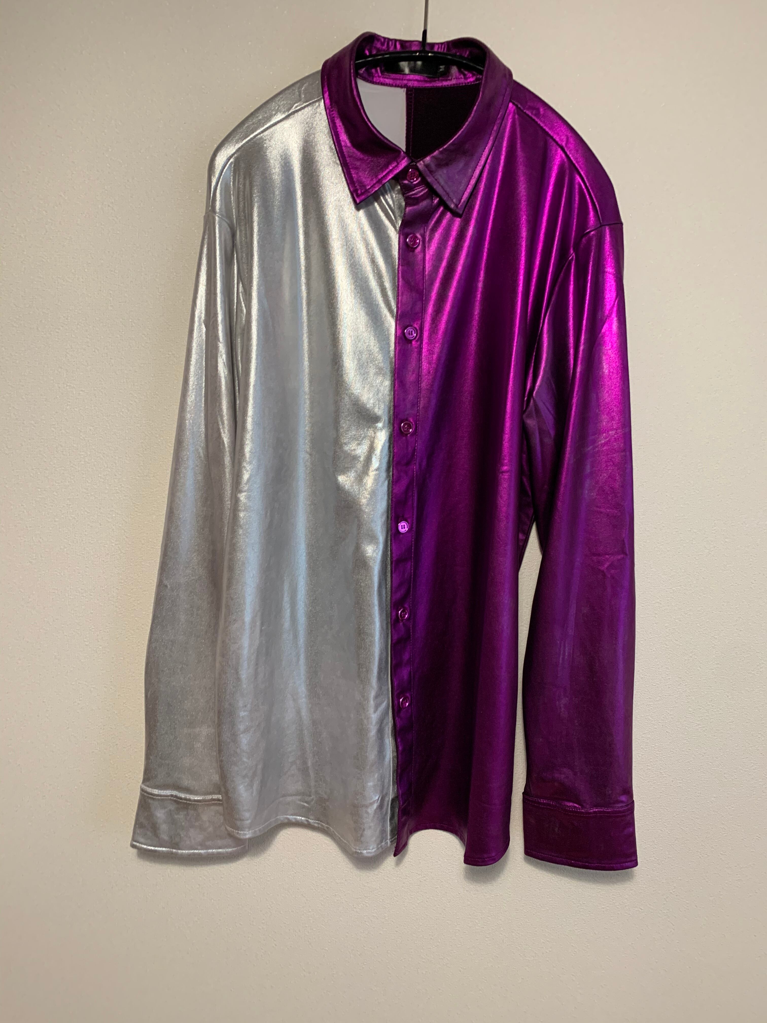 パープルとシルバーのツートンカラーがウルトラマンのようなシャツ。