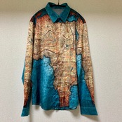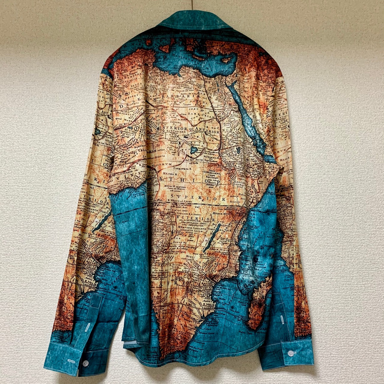 ターコイズブルーのカラーが映える昔の地図の柄。