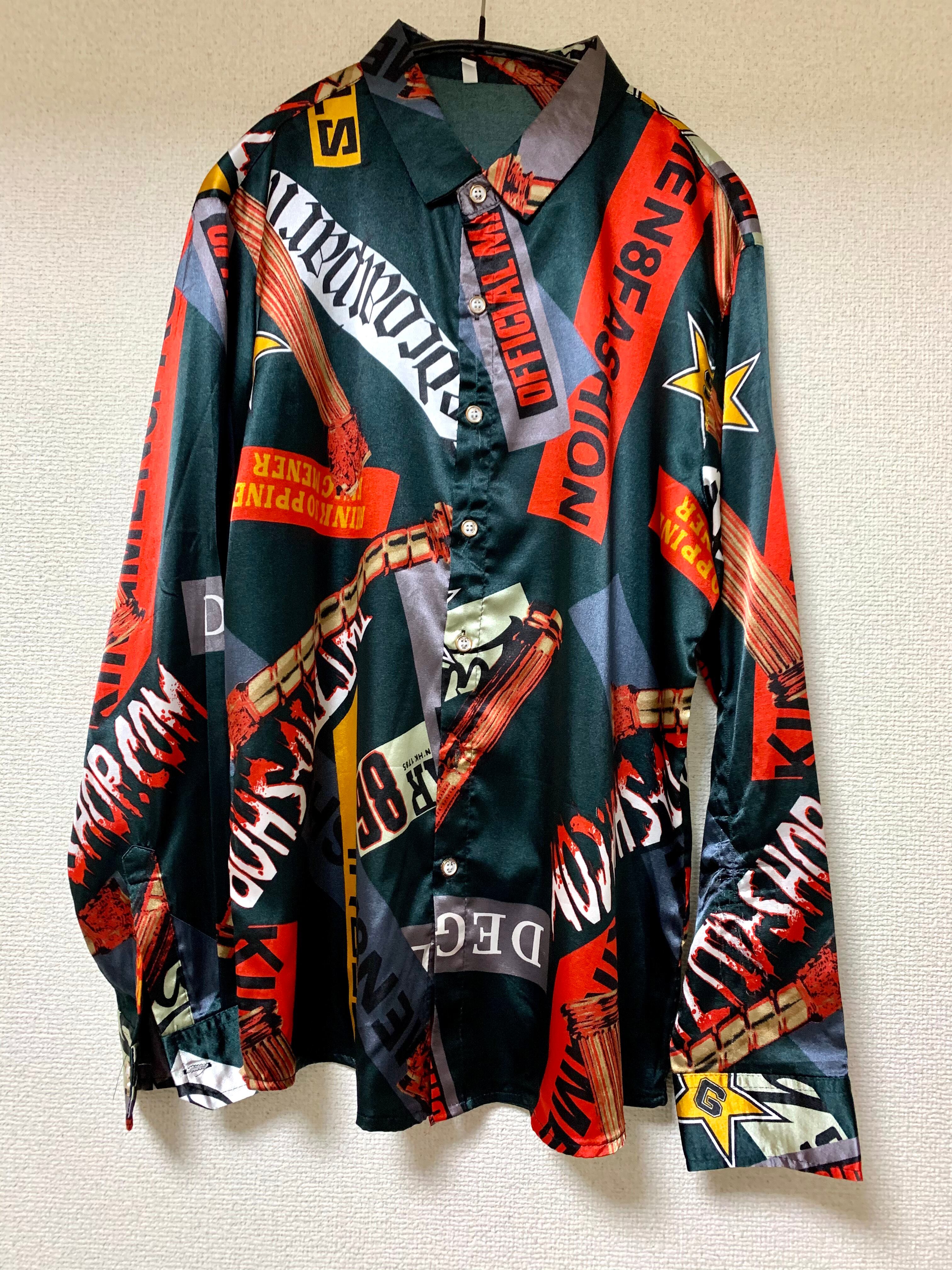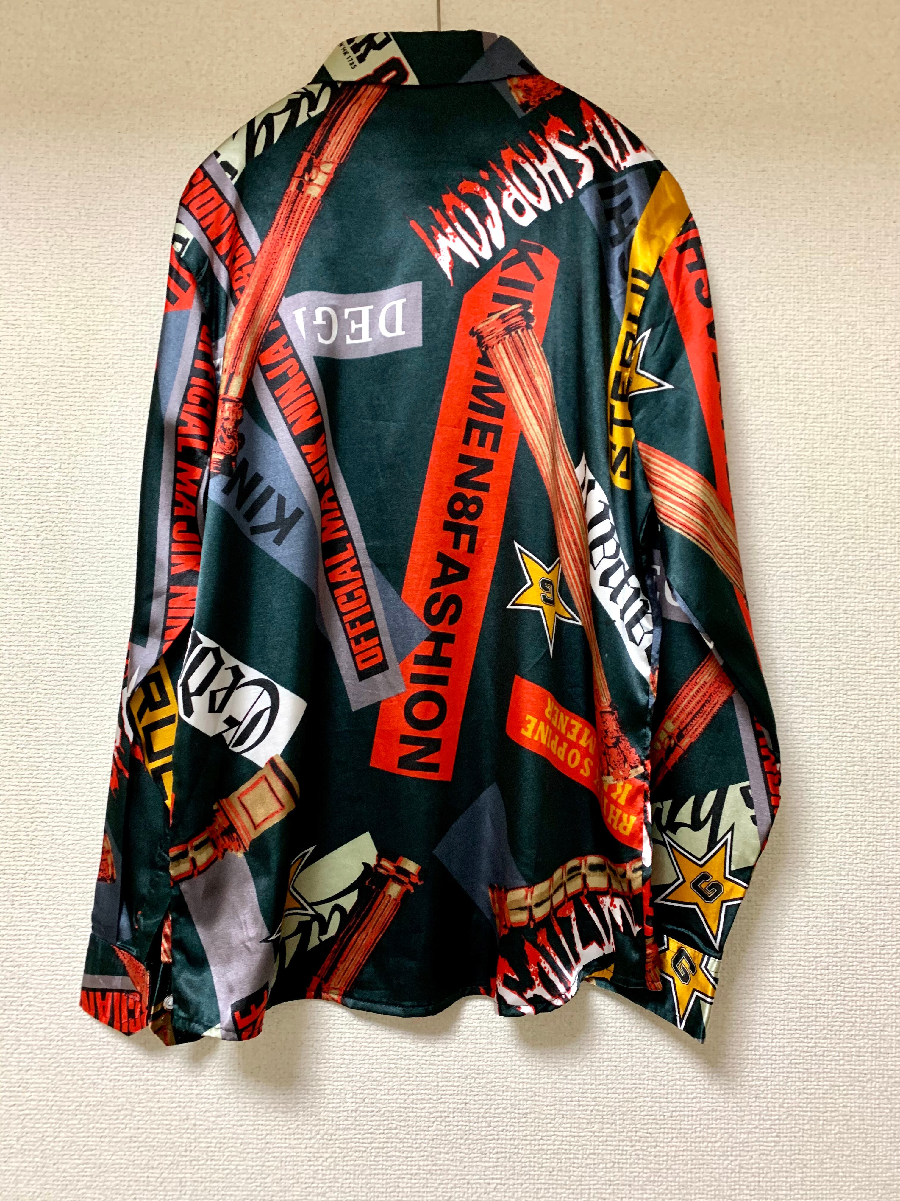 アバンギャルドなロゴの柄シャツ。