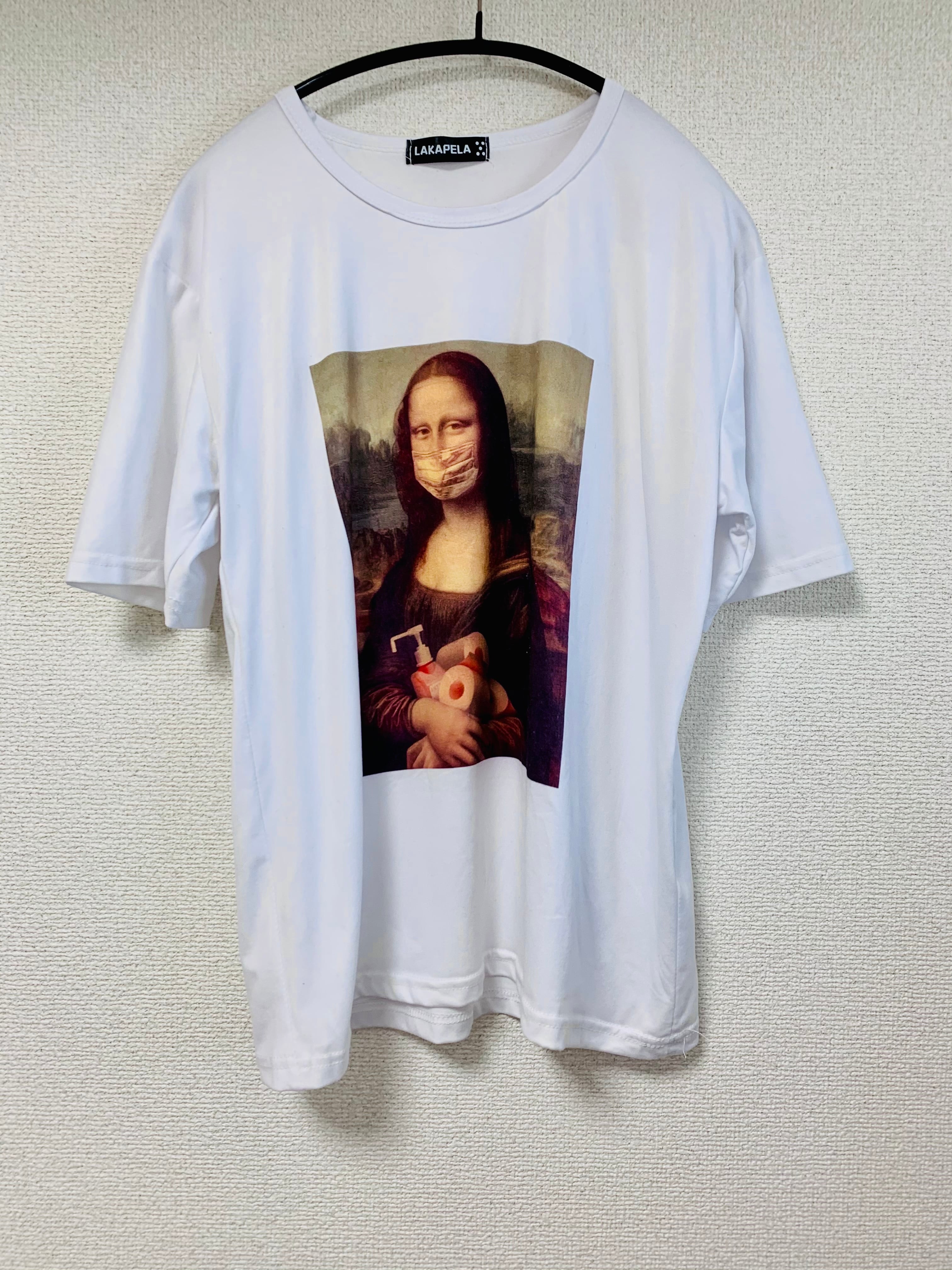 モナリザがマスクやアルコールスプレーを持ったパロディTシャツ。